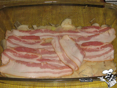 Продолжаем искать применение бекону. Сегодня в меню очень простая, быстрая и вкусная картофельная запеканка. Берем: Бекон, Картошку, Лук, Сыр, Чеснок, Томатный соус, Перец- соль. Количество всего не указываю, так как формы для запекания у всех разные. 1 слой. Тертая слайсами картошка, на ней бекон. 2 слой. Еще картошка, на ней лук. Солим- перчим. Промазываем этот слой томатным соусом и чуть- чуть посыпаем тертым сыром. 3 слой. Бекон и чеснок. 4 слой. Картошка, соль- перец и сверху обильно тертый сыр. В принципе и все, хотя количество слоев может быть бесконечно, равно как и компонентов, можно и болгарский перчик добавить и кабачок, да что угодно... Пихаем всю конструкцию в нагретую до 220 духовку, минут на 30- 35 под крышкой (фольгой) и минут 5 без- для сырной корочки. З.Ы. Кстати, духовки у всех разные, посему проще будет сначала поставить все это дело без сыра до пропекания, а минут за 5 до конца вынуть и посыпать сыром, чтобы корочка успела подрумяниться.