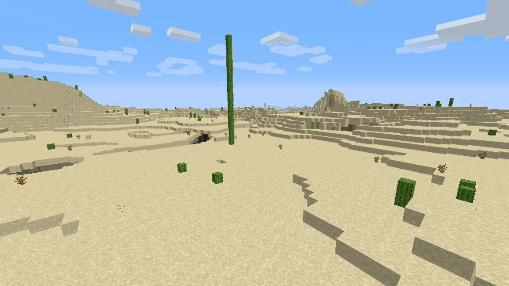 В так называемой игре Майнкрафт, недавно нашли самый высокий кактус за всю историю игры! Это был кактус высотой 22 блока, который рос посреди пустыни Minecraft 1.14. Эта высота кажется сумасшедшей, но сейчас участниками проекта обнаружен новый рекордсмен — кактус высотой 23 блока. Он выше всего на 1 блок, и это кажется очень незначительным «шагом», но на его поиски ушло полгода, и с каждым разом вероятность, что найдётся ещё более высокий кактус, снижается. Как полюбоваться на самый высокий кактус в Minecraft самому Для этого нужно установить Minecraft 1.14.3, создать новый мир с ключом генерации (сидом) 184693195438010998. После входа в этот мир нужно телепортироваться к кактусу с помощью команды