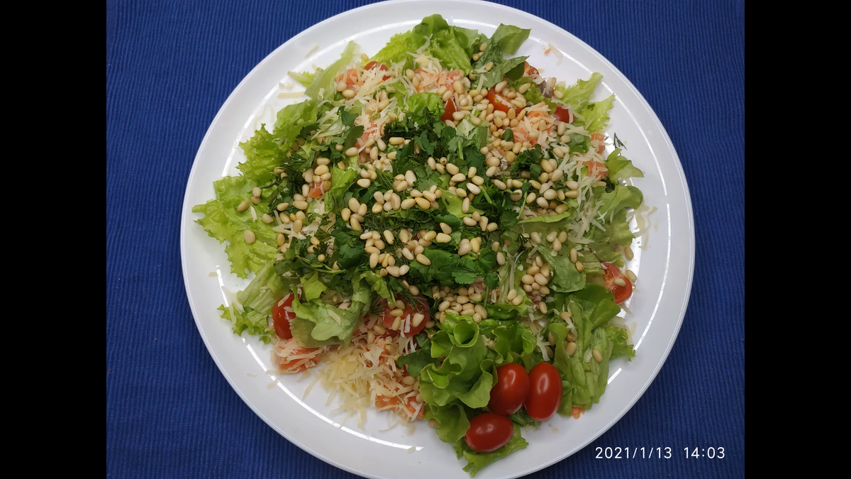 2. Он очень полезный, так как в составе рыба, сыр , орехи,зелень и овощи.