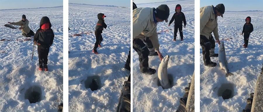 Шестилетний мальчик впервые пошел на рыбалку и поймал рыбу размером с самого себя! Имя этого счастливчика Дрейден Нельсон. Он отправился на подледную рыбалку на заливе Коцебу, что находится в американском штате Аляска. Родители Дрейдена увидели, что на крючок попалась вовсе не мелкая рыба и сразу помогли мальчику справиться и вытащить рыбу на поверхность. После успешного улова они осмотрели рыбу и очистили ее от льда. Их удивлению не было предела, по замерам рыба в длину составляла 116 сантиметров. Первым трофеем Дрейдена Нельсона стала белорыбица. Белорыбицы могут достигать 27 килограмм в весе. Они способны преодолевать более 1600 километров в год. Срок жизни этого вида рыб достигает до 30 лет. Обычно их вылавливают ранней весной, до того, как лед начинает таять. Залив Коцебу находится менее чем в 300 километрах от границы с Россией, он замерзает с октября по июль.
