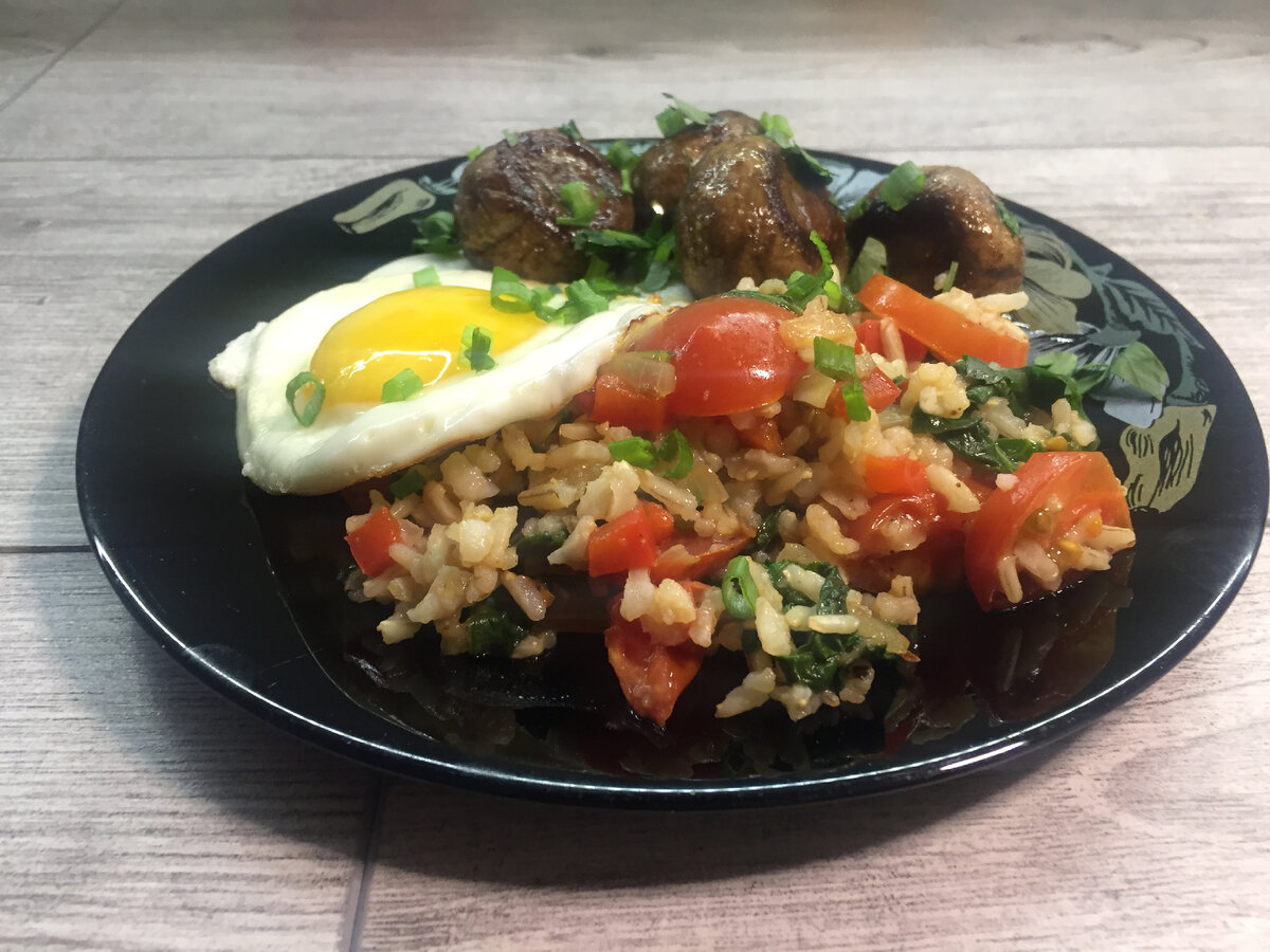 "РИС С ОВОЩАМИ – обжаренными помидорами черри, шпинатом, красным перцем и шампиньонами – вкусное, красочное, сытое блюдо." Для жиробасов. Разбавляем рис овощами. В целом вкусный. Как лёгкий ужин будет норм. #видео рецепты #видео рецепт #рецепты