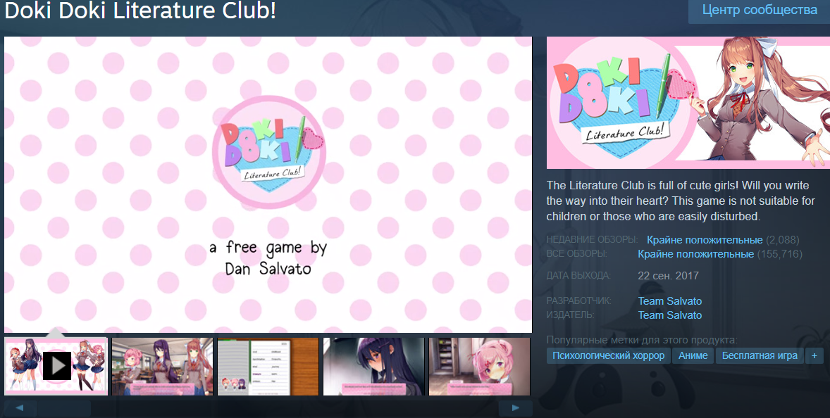 Я как то рыскаю по стиму решил посмотреть что-нибудь бесплатное и анимешное . Так что я создал вам подборочку наиболее заинтересовавших меня проектов или просто культовые . 1 Doki Doki . Ну это классика . Средний хорор но зато главные героини всем нравятся . Моя любимица это Нацуки поскольку манга это тоже литература . 2 Helltaker . Опят же топовые вайфу . А про игру можно сказать что неплохая ритм головоломка максимум на часок . А тут моя топовая вайфу это конечно же близняшки церберы . 3 Wakfu . Буду честен свами я в неё не играл но добавил я её поскольку выходит неплохой мульт или это аниме ? (ответ дайте в комментариях) . Ну для фанатов мультсериала самое то . 4 Kurtz Pel . Снова не играл из за плохого инета ( долго бы скачивалась ) . По комментариям неплохая игра возможна она неплохая альтернатива геншин импакт . Но зато требованию у неё точно такие де . А ещё она в збт . Спасибо за просмотр следующая статья будет подробный обзор Genshin Impact пожалуйста не пропустите .