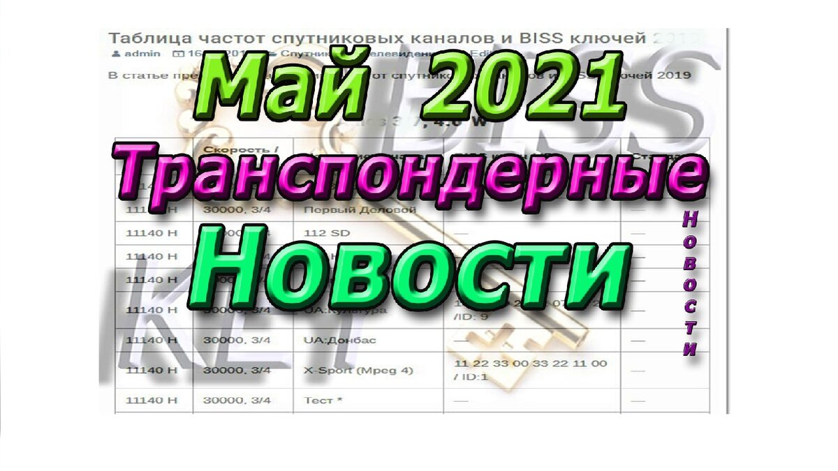 Транспондерные новости от 02.05.2021 Yamal 401 90° East (C-band) Juvelirochka (3645 L) появился — идет открыто TDK (3645 L) появился — идет открыто Intelsat 17 66° East Rossiya 24 (12547 H) появился — идет открыто RTR Planeta (12547 H) ушел AzerSpace 1 / Africasat-1A 46° East Formula (11095 H) появился Грузинский канал- идет открыто Транспондерные новости каналов 03.05.2021 Yamal 401 90° East (C-band) Mir Zdorov’ya (3645 L) появился идет открыто TDK (3645 L) ушел Express-AT1 56° East Mir Zdorov’ya (12207 R) появился идет открыто TDK (12207 R) ушел Транспондерные новости каналов 07.05.2021 KazSat 2 86.5° East Mir (+3h) (11504 V) появился закодировано Irdeto / VideoGuard Express-AMU1 (Eutelsat 36C) 36° East Mir Zdorov’ya (Tricolor, 12111 L) появился закодировано DRE-Crypt TDK (Tricolor, 12111 L) ушел Транспондерные новости каналов 10.05.2021 Intelsat 17 66° East Rossiya 1 (12547 H) появился идет открыто Rossiya 24 (12547 H) ушел Транспондерные новости каналов 11.05.2021 AzerSpace 1 /