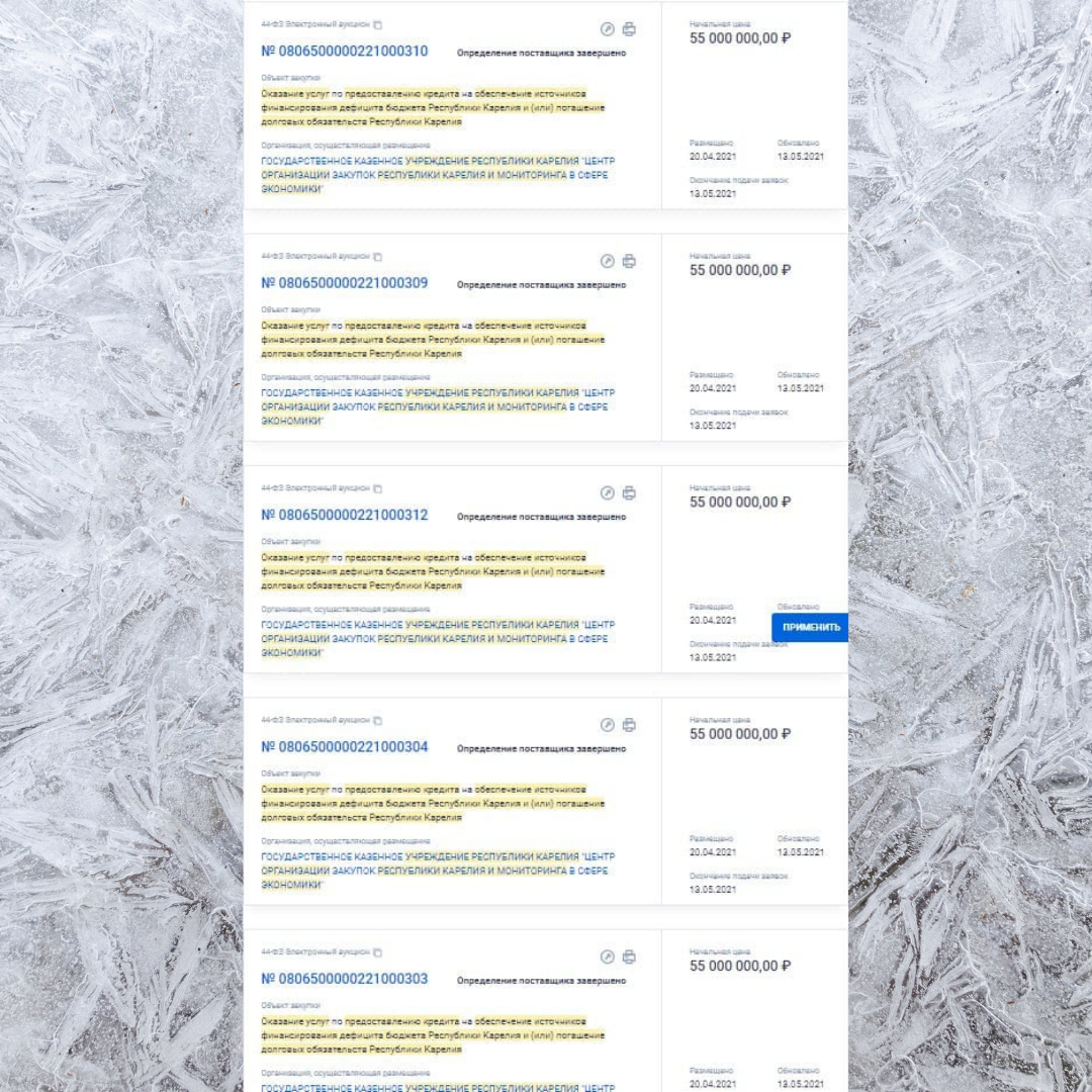 Карелия все первые месяцы 2021 года активно берет в долг. На Госзакупках можно насчитать не менее 30 «кредитных» аукционов на общую сумму почти в 2 млрд рублей. Вот только финансовое положение региона под руководством Артура Парфенчикова это вряд ли спасет.