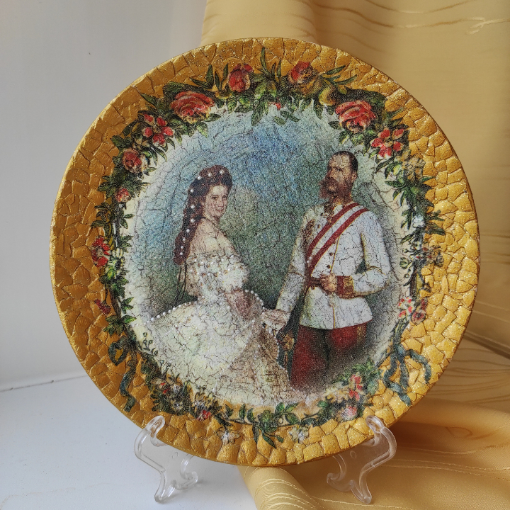Создаем эффект состаривания поверхности декоративной тарелочки с помощью кракелюров.