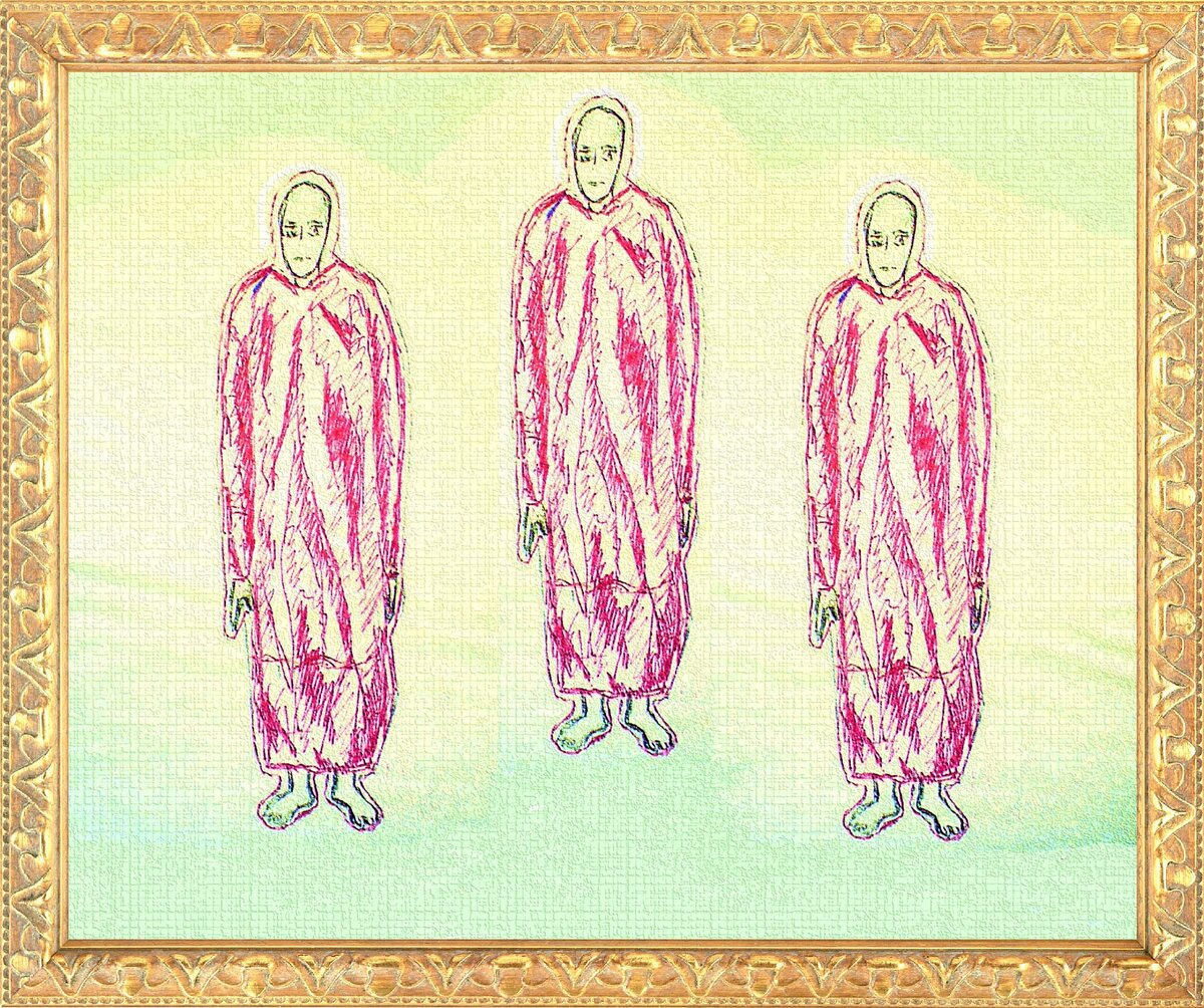 Однако явление Троицы совсем недавно произошло в России и пришло время поведать об этом. Явление ТРОИЦЫ (Отца Небесного) произошло в сентябре 1989 года! На основании величайшего состоявшегося события была написана икона ТРОИЦА - автор Николай Королёв (Nick King). Свидетельство о публикации иконы ТРОИЦА №383539 от 16 марта 2021 года. Явление Троицы состоялось на поляне березового леса, куда автор иконы был перенесен прямо с работы в 1989 году, при этом, полностью продолжал оставаться на работе в НИИ, видел и слышал и всех людей на работе. Очень необычное состояние пребывание в двух местах одновременно было пугающим и успокаивало только продолжение восприятия людей на работе. Это свидетельствовало, что автор оставался в сознании, не умер и не впал в транс. Перед ним, в луче света, в воздухе висели три человекоподобные существа в длинных красных платьях, с босыми ногами, без волос, а кожа их была светло-голубой. Едва он успел подумать, кто это, как в голове получил телепатический ответ, что перед ним Высшее Космическое Существо, которое всегда было, всегда есть и Всегда будет, Везде и Всюду. Затем он почувствовал сильнейший энергетический поток, который буквально сбивал его с ног, и этим потоком была любовь, которая была в миллионы раз сильнее того, что он когда-либо чувствовал. Существо любило его, и он почувствовал, что тоже любит в ответ. Затем поток усилился и превратился в летящие глыбы информации. Автор осознал, что перед ним ОДНО существо, которое видится как трое потому, что только так можно отобразить многомерность и главные качественные свойства (ипостаси) единого Бога. Затем все как будто взорвалось, и он стал видеть все СУЩЕЕ, так как видит и чувствует каждая ипостась Бога, оставаясь при этом единым существом. Через несколько лет в книге Бхагавад Гита автор столкнулся с описанием похожего события. В нем Бог Кришна показал брату Арджуне свою божественную Вселенскую форму, которую человеку увидеть невозможно, а можно увидеть только божественным зрением. Если проще, для того, чтобы человек смог увидеть Вселенскую форму Троицы надо, чтобы Бог на время поставил человека на свое место. И это, к тому же, идеальный мгновенный способ передачи нужной информации человеку. Описание того, что видел Арджуна во Вселенской форме Бога, полностью совпадало с тем, что видел и ощущал автор. Мне (автору иконы) удалось передать в иконе ТРОИЦА только малую толику реальной энергии Бога. Икона, это скорее точка настройки на Единого Бога Троицу, как ключ для входа в канал или в путь, ведущий к Отцу Небесному. Поэтому, смотреть на икону следует как бы сквозь нее (как через окно) на единого Бога, тогда восприятие становится более точным за счет приближения к Богу. В каждой религии есть свой путь к Богу через основателей религий и моя икона ТРОИЦА дополнительная возможность для тех верующих, кому не удалось приблизиться к Богу с помощью религии, а также для атеистов, ведь на иконе отображено реально произошедшее событие явления Троицы.