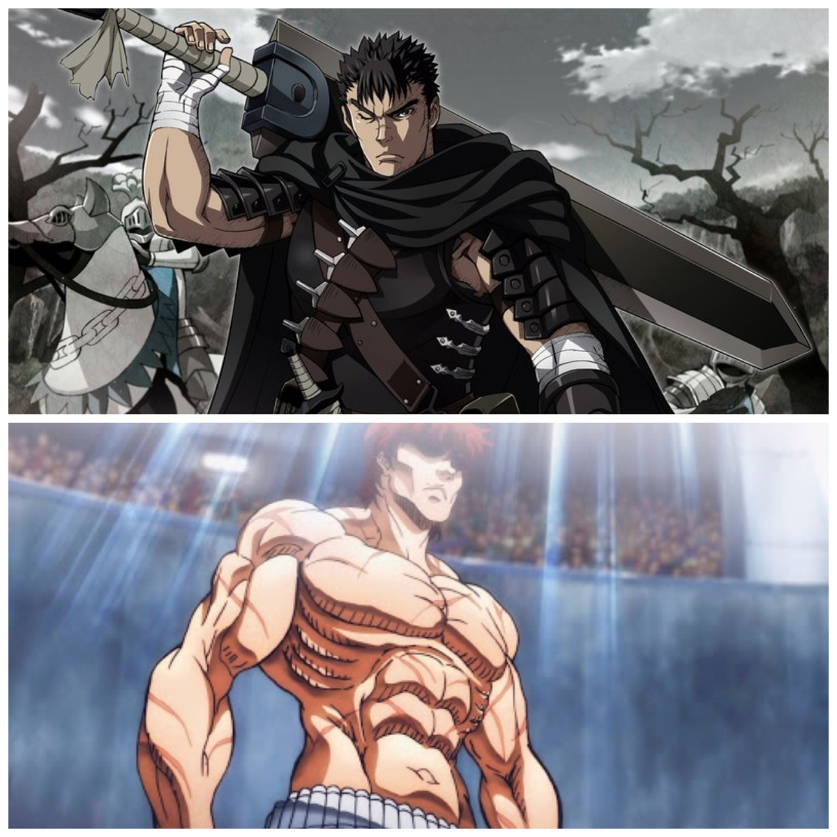 Здесь я посоветую вам, что можно посмотреть в свободное время, и не обязательно быть любителем аниме, чтобы вам понравилось, то что я предложу. Очень интересная и захватывающая история, рассказывающая нам сразу о нескольких главных героях, человеке по имени Гатс (которого и называют берсерком), о предводитель отряда наёмников Грифите и их спутнице Каске. Действия разворачиваются во времена похожие на средние века, где дерутся мечами, живут в замках и передвигаются на конях. Почему я советую вам посмотреть эту картину? Аниме "Берсерк" повествует нам об очень важных чувствах дружбе, любви, и даже предательстве. Это аниме очень хорошо передаёт настроение и чувства главных героев сериала. Ставя себя на место главного героя, зритель переживает и чувствует всё то, что происходит в аниме. Из-за столь интересного сюжета, хорошо проработанных персонажей, это аниме смотрится на одном дыхании. 2. Боец Баки В данном аниме рассказывается о очень молодом, но не по годам крепком парн