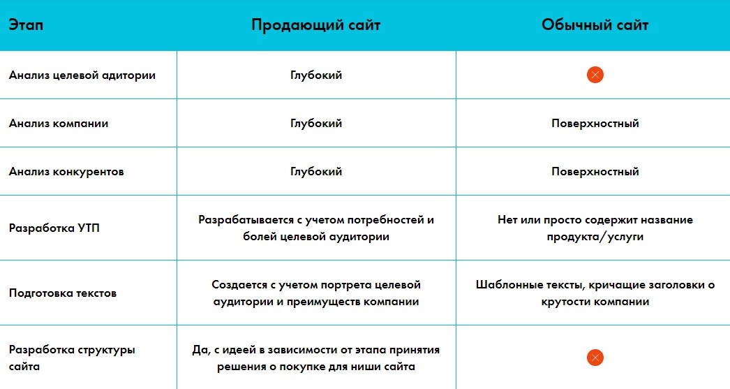 Часто предприниматели не совсем понимают, что такое продающий лендинг (одностраничный сайт) и удивляются почему он в 3-6 раз дороже обычного, которые штампуют пачками на биржах фриланса за 5-10 тысяч. Ключевое слово: «продающий». Этот сайт уникален и отстраивает от конкурентов, делается под потенциальных покупателей. Это приводит к увеличению его конверсии, и, при качественной обработки заявок, к увеличению заказов. Чтобы понять, почему отличается цена, давайте рассмотрим этапы создания обычного и продающего сайта. В создании обычного сайта можно выделить 3 этапа: 1) Сбор базовых данных для создания: информация о компании (название, адреса, продуктовая линейка, фото, имеющиеся отзывы и т.д.). Просмотр 2-3 сайтов конкурентов. Обработка информации, как таковая, отсутствует. 2) Подбор фотографий и подготовка дизайна. 3) Подбор подходящего шаблона и заполнение данными из предыдущих пунктов. Сайт готов. Он не уникален, на нем мало полезного и порой понятного. Написано «какая это крутая комп