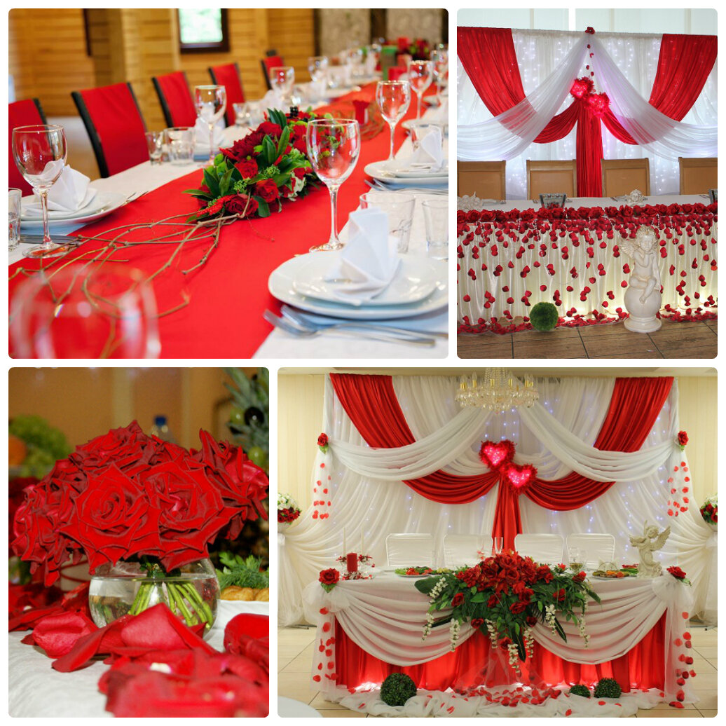 Оформленное в красном цвете торжество запомнится яркостью и оригинальностью и подчеркнет неординарность будущей семьи. Как и при всякой работе с цветом следует помнить о многочисленных нюансах и особенностях красных оттенков, умело их сочетать, создавая элегантный антураж.