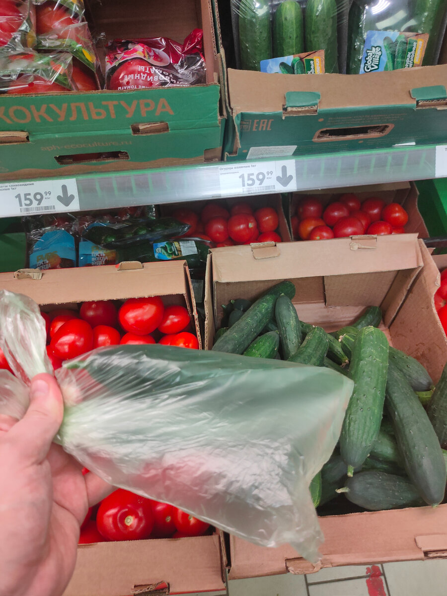 Всем привет! Меня зовут Алексей. Рад приветствовать вас на канале Экономный хозяинъ. Сегодня расскажу о своих покупках в Пятерочке на этой неделе. Цены действительны с 11.05.21 по 17.05.21. Купил различных овощей. Огурцы и помидоры. Огурцы среднеплодные колючие стоят 160 рублей за килограмм. Взял 2 штуки, мягкие. Томаты сливовидные стоят 160 рублей за килограмм. Купил еще немного моркови и лук репчатый. Морковь грязная стоит 40 рублей за килограмм, а лук репчатый по 25 рублей за килограмм. Купил много мяса в этот раз. Филе бедра Петелинка стоит 270 рублей за килограмм. Увидел цену на карбонад свиной Черкизово 750г. Стоит всего 170 рублей за кусок. И еще купил кусок окорока свиного Слово мясника по цене 270 рублей за килограмм. Запасся. Также купил масло сливочное МУ-У 180г за 120 рублей. На этой неделе много акций на различные сосиски и сардельки. Купил сардельки Стародворские Вязанка 470г за 140 рублей и сосиски Сливочные Останкино 350г за 93,50. Дома закончился почти майонез, куп