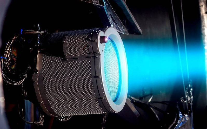 Принцип работы двигателя заключается в ионизации газа и его разгоне электростатическим полем. Бак с газом стоит в самом начале двига