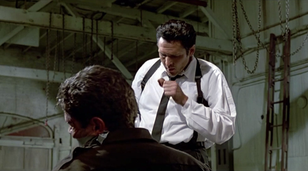 По стечению обстоятельств боксер Бутч Куллидж (справа), вместе с человеком, желающим его убить, - Марселасом Уоллесом (слева) попадает в плен к садистам-извращенцам. Избежав изнасилования, герой Брюса Уиллиса практически сбегает, но в последний момент решает вернуться и помочь своему врагу. Он осматривает подвал в поисках оружия, находит катану и спасает криминального босса. Благородство окупается, Марселас прощает Бутчу все прошлые обиды, а покалеченный Зед вот-вот будет подвергнут страшным и жестоким пыткам.