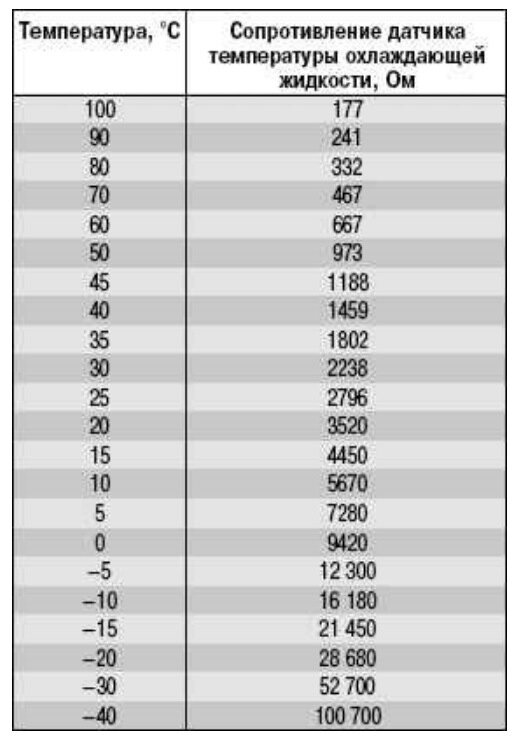 Сопротивление и температура датчика охлождающей жидкости ваз 2110-12.