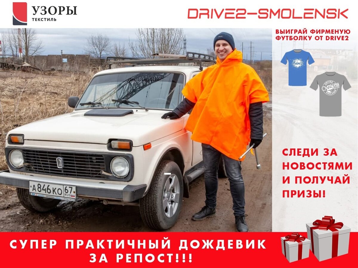 🎁🎁🎁Призы:🎁🎁🎁 💥 5 многоразовых дождевиков из непромокаемой ткани. Цвет изделия на выбор победителя (при наличии в магазине). 💥 Мужскую футболку DRIVE2 Смоленск (размер 50) 💥 Женскую футболку DRIVE2 Смоленск (размер 42) ⚠️ Условия обязательные для всех участвующих : ✅ Быть подписчиком DRIVE2 СМОЛЕНСК ► СООБЩЕСТВО ЛЮДЕЙ И МАШИН ◄ ✅ Быть подписчиком "Узоры Текстиль" ✅ Сделать репост данной записи на СВОЮ РЕАЛЬНУЮ страницу📢 ✅ В день розыгрыша запись должна быть ЗАКРЕПЛЕНА или быть первой 📌 на стене (если иная запись не закреплена), а стена открыта для просмотра! ✅ Страница должна быть Открытой и настоящей (реальное Имя и Фамилия, никаких фейков и недавно созданных клонов). ✨Желаем Вам везения и Удачи!✨ ❌запрещено участвовать : ⛔️коммерческим страницам; ⛔️фейковым страницам; ⛔️страницам которые хотят выиграть весь интернет (большое количество репостов различных конкурсов) - на усмотрении организаторов конкурса! 🖥 Конкурс завершится 15 мая 2021. 🕛 Видео-отчетом с помощью приложен