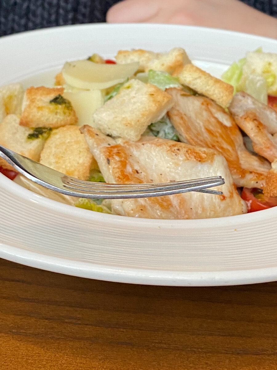 С подругой выбирали место где нам покушать в приличном месте, на фуд-корт идти не хотели, пришли в свою компанию, заказали наш любимый салат «Цезарь» и тут нас встретила такая чудо-вилка. Ничего плохого не имею против этого ресторана, но можно хотя бы обращать внимание на столовые приборы которые приносят людям.😄