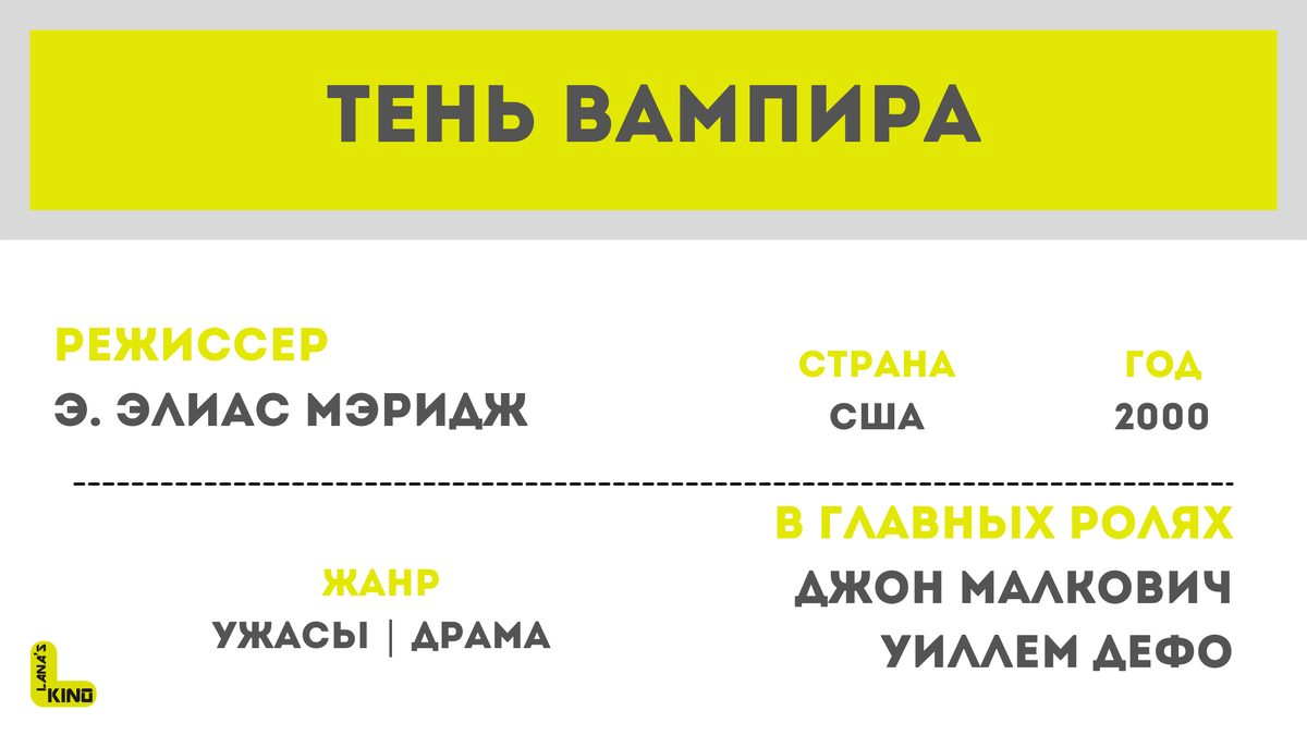 Shadow of the Vampire Неплохая задумка показать исполнителя роли Носферату как настоящего вампира и съемочный процесс, для которого присутствие сверхъестественного монстра, разумеется, не проходит без следа и потерь, превращается в некое надругательство над реальными создателями фильма 1922 года. Кадры