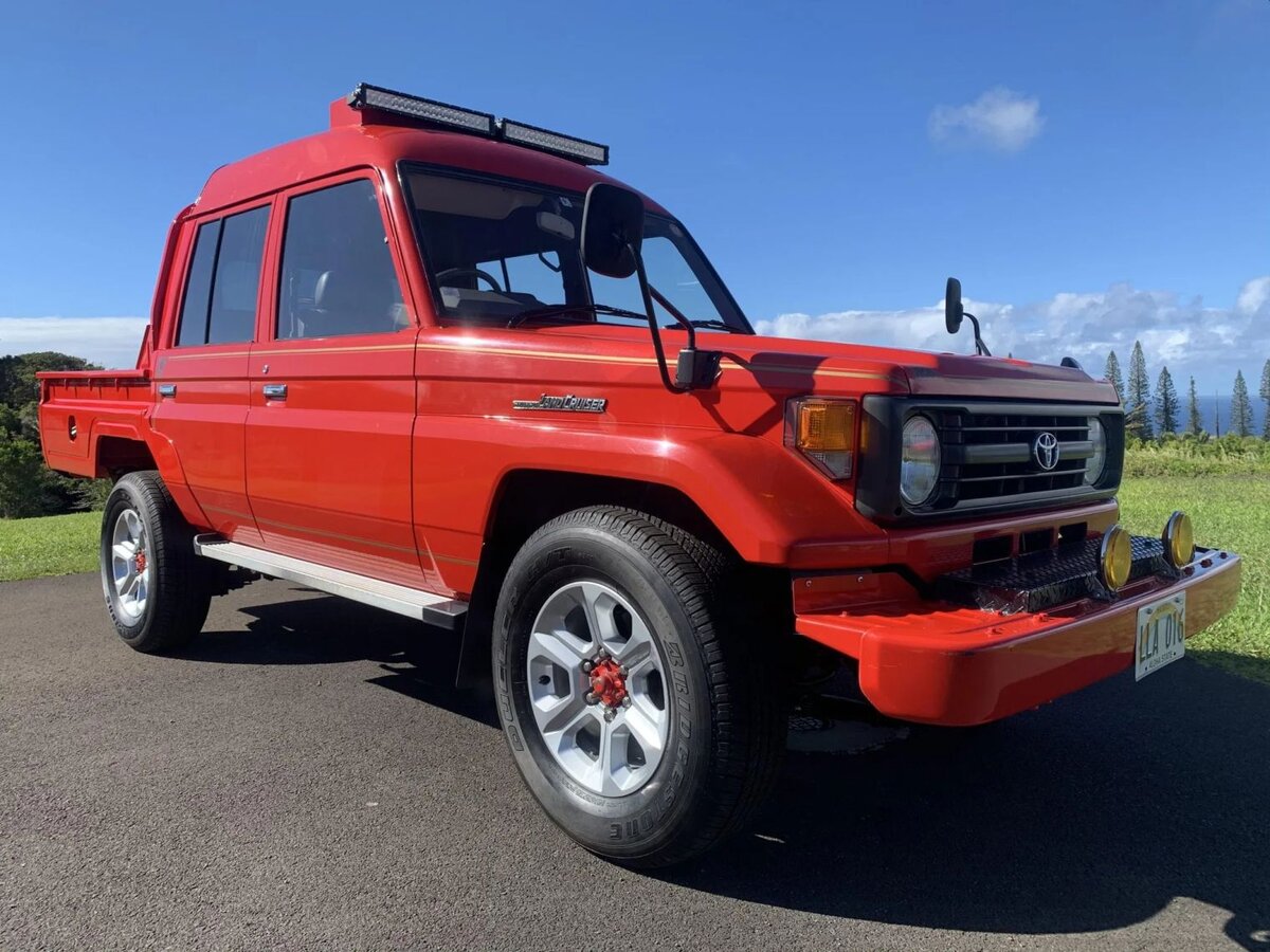 Недавно на мои глаза попался любопытный внедорожник, да еще и практически без пробега. И речь сейчас не про очередной Луазик, забытый за 30 лет в дедушкином гараже, а про Toyota Land Cruiser 75 (HZJ75) 1995 года. Еще из тех, настоящих железных машин, которым было всё нипочём. Ни вода им не помеха, ни огонь, а медные трубы они и вовсе с лёгкостью везли на себе. Насчет огня, кстати, эта довольно редкая версия «Крузака» была сделана для внутреннего рынка, конкретнее – для тамошних пожарных. Почти всю свою жизнь она провела в резерве. На пикап даже не устанавливали противопожарное оборудование, никаких тебе мотопомп, рукавов и прочих огнетушителей. Правда, за время простоя кое где повредилась родная краска. Спустя четверть века практически новую машину списали и выставили на продажу. Покинув острова восходящего солнца TLC отправился в Канаду, но долго там не задержался. Накатав несколько тысяч миль по Британской Колумбии, машина оказалась у дилера подержанных авто в США. Из усовершенствова