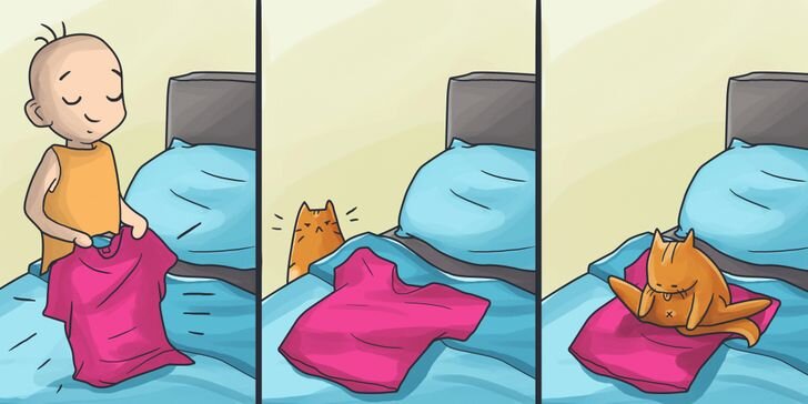 Кошки в высшей степени странные существа. Пытаться понять их бесполезно, поэтому остается просто принять их и любить со всеми странностями. А вы оказались в подобных ситуациях со своими любимцами?)