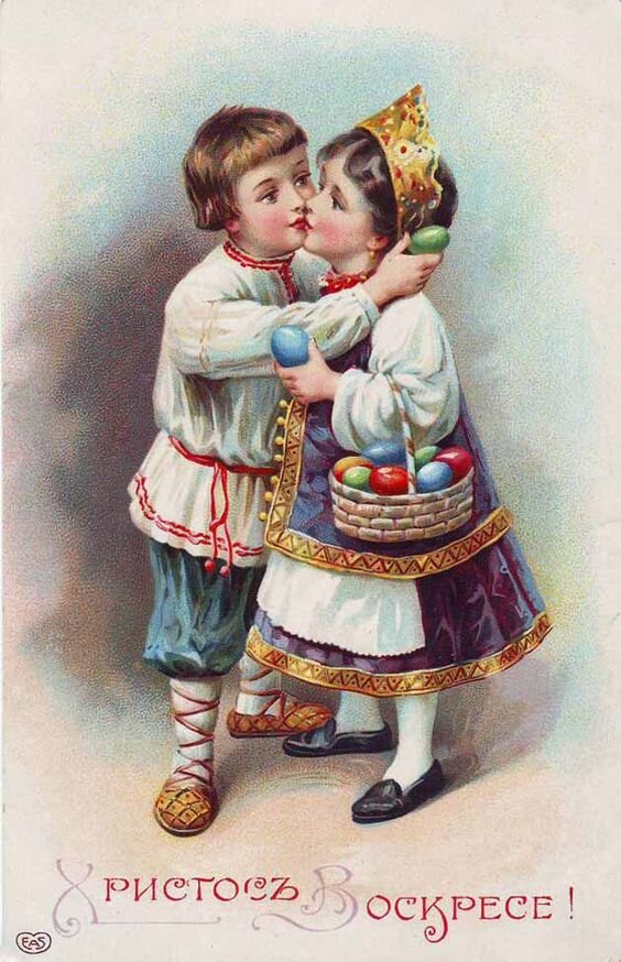 Пасхальные открытки. Часть 4. Поцелуй в уста ради праздника Христа