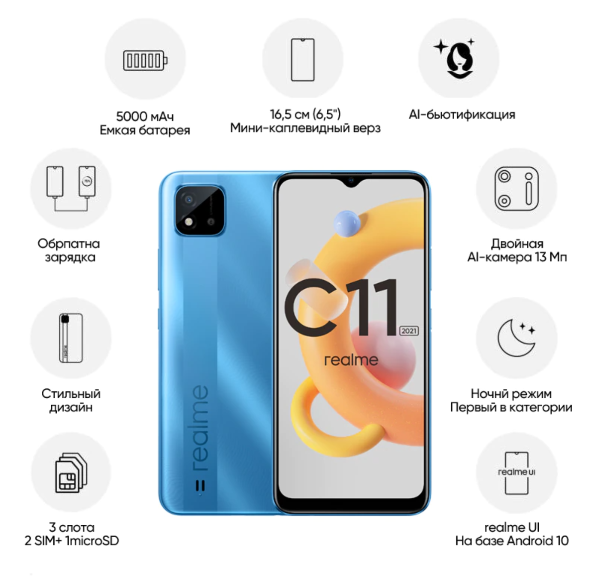 В линейке Realme и раньше были приятные недорогие модели: C21, C20 и C11. Сейчас китайцы решили закрепить свой успех, выпустив свой самый бюджетный телефон – C11 2021, который будет стоить 8 370 рублей. Знакомимся с ним поближе. Смарт очень похож на C20, но есть три ключевых отличия: В остальном всё просто и понятно – 6.52” дисплей HD+, 2 ГБ оперативки, 32 на флешке, камера на 8 МП и фронталка на 5 МП. За такие деньги набор более чем приемлемый. Продажи уже стартовали, причём на AliExpress в Tmall на новичка есть дополнительная скидка: до 11 мая его можно забрать за 6 990 рублей. Так что, если вам нужна недорогая звонилка, самое время ей обзавестись.