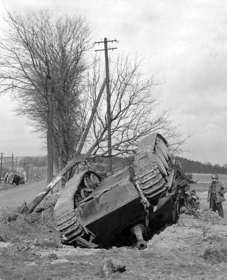 German heavy self-propelled gun of the tank destroyer class – Jagdpanther, destroyed as a result of an air attack by the Allies near Altenkirchen, the Western Front.