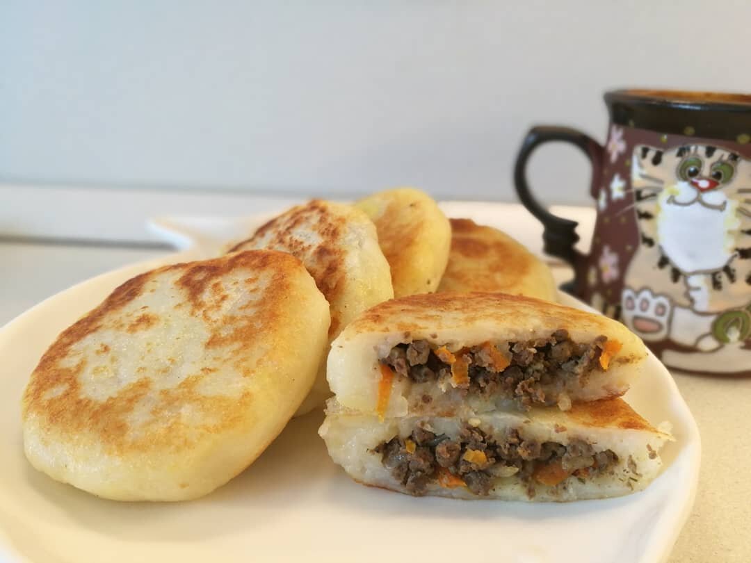 В просторах интернета нашла рецепт картофельных пирожков. Понравился. Решила переделать его под БГ вариант и протестировать на предмет съедобности. Для теста нам понадобится: 🔹1,5 кг картофеля 🔹5 ст.л. мучной смеси или кукурузного крахмала 🔹Соль (по вкусу) 🔹Перец (по вкусу) для начинки: 🔹500 гр куриной печени 🔹1 луковица, нарезанная кубиками 🔹немного морковки 🔹Соль (по вкусу) 🔹Перец (по вкусу) Как готовить: 🍀 Варим картофель, разминаем в пюре и даем остыть. Добавляем мучную смесь и хорошо перемешиваем. 🍀 для начинки: обжариваем печень, остужаем и перекручиваем на мясорубке. На другой сковороде обжариваем лук с морковкой. Все смешиваем. 🍀 лепим пирожки: Берем кусочек теста, скатываем в колобок, разминаем в лепешку и кладем по центру столовую ложку начинки. Залепляем края и придаем желаемую форму. Обваливать в сухарях не нужно - итак нормально обжарится. Готовим на разогретой сковороде по 2-3минуты с каждой стороны. Готовые пирожки сложить на бумажное полотенце