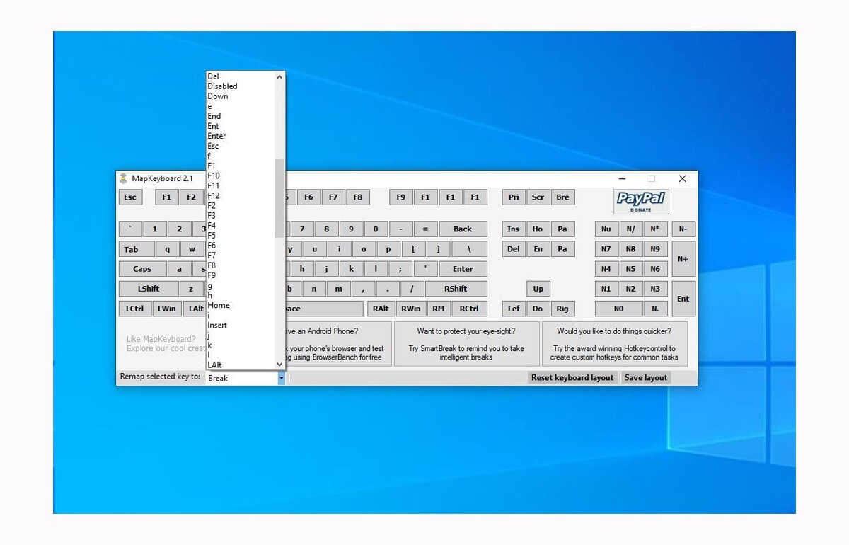 MapKeyboard — программа для переназначения клавиш клавиатуры. Приложение бесплатное и не требует установки, работает в 32-х и 64-битных разрядностях Windows. Основное предназначение программы MapKeyboard — переназначение любых клавиш клавиатуры. Другими словами, пользователь может назначить требуемой кнопке функцию любой другой клавиши. К примеру — при нажатии на F12 может срабатывать функция клавиши CAPS LOCK. Программа способна переназначать функционал большого числа клавиш одновременно. Это позволит, к примеру, задействовать такие редко используемые клавиши как INSERT, SCROLL LOCK, PAUSE BREAK и т.д. под любые полезные функции. Также утилита MapKeyboard окажется полезной для клавиатуры с полностью нерабочими или сбоящими (срабатывает только после нескольких нажатий, западает и т.п.) клавишами. Пользователь сможет программно заменить неработоспособные подобные клавиши, назначив их функцию рабочим кнопкам.