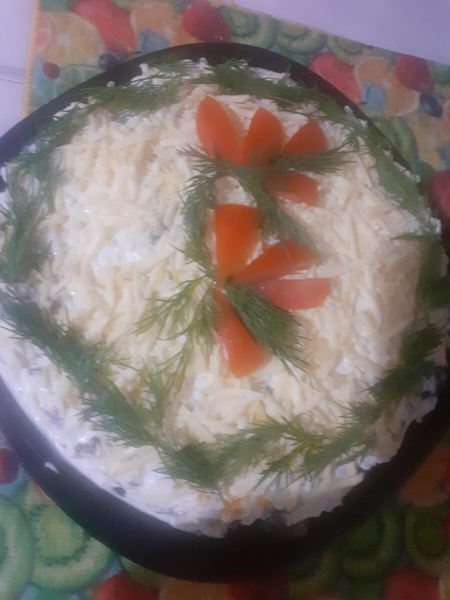 Всем привет! В первомайские праздники вспомнила об этом салате и приготовила , а потом долго удивлялась, почему этот салат незаслуженно забыт нами. Мы часто готовим: Селедку "под шубой", Оливье, салат с крабовыми палочками, Мимозу, а про салат "Полянка" , как то забыли. А забыли, то зря, салат действительно вкусный и сытный. Кто знал этот рецепт, то просто напомню о нем. Ну а кто не знал, то делюсь с Вами рецептом. Способ приготовления: Отварной картофель натираем на крупной терке, немного присаливаем и промазываем сверху майонезом. Куриную грудку нарезаем кубиком (среднего размера). Можно использовать, как копченую грудку, так и отварную. Делаем сеточку из майонеза . Следующий слой это обжаренные грибы. Тут тоже можно использовать, как лесные грибы, так и "магазинные" шампиньоны. Нарезаем грибы ломтиками/кубиками, обжариваем на растительном масле 20 минут. Выкладываем грибы из сковороды на тарелку с помощью шумовки, что бы масло (если оно осталось) осталось в сковороде. Остужаем, п