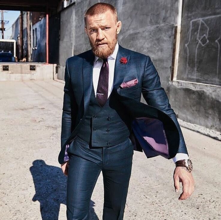 Конор Макгрегор больше всего известен благодаря своим достижениям в сфере боевых искусств, но он не только один из лучших бойцов UFC, Конор Макгрегор обладает ещё одним талантом: умением стильно одеваться. Его костюмы настолько же поразительны, как и движения на ринге. Именно поэтому многие мужчины обращают внимание на его идеи и советы, касающиеся моды. Продуманные фасоны одежды – главная ключевая особенность традиционного стиля Конора Макгрегора. Знаменитый боец регулярно посещает различные мероприятия в элегантных спортивных и стильных костюмах. Довольно часто он отдаёт предпочтение классическому дизайну костюма-тройки, который включает жилет. Если говорить о цветах, серый и синий – его любимые оттенки. Однако он не против и одежды с рисунком, таким как, например, клетка или полоски. Синий костюм Если вы ищете лёгкий способ превзойти стиль Конора Макгрегора, следует вложиться в один или два хороших синих костюма. Костюмы разных оттенков синего – от богатых насыщенных до тёмных –