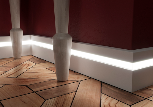 Ночная подсветка коридора — это не только необычно и красиво, но и имеет практическую пользу. Неяркий свет все же позволяет видеть во тьме очертания предметов. Следовательно, риск споткнуться об них снижается. При этом исключается необходимость включать основное освещение. ПОДСВЕТКА ПОЛА В КОРИДОРЕ: ЧТО ЛУЧШЕ ВЫБРАТЬ Не все понимают, как именно со стороны может смотреться подсветка коридора. Фото с конкретными дизайнерскими решениями в конкретных интерьерах помогут увидеть это наглядно. В целом же сейчас существует несколько путей создания подсветки пола в коридоре. Самый простой путь — установить плинтусы с рассеивающими экранами. Данные изделия изготовлены с расчетом на то, что в них будут располагаться светодиодные ленты. Для этого в их конструкции есть специальный паз. ЧТО НУЖНО ЗНАТЬ О СВЕТОДИОДНЫХ ЛЕНТАХ Эти ленты состоят из полупроводниковых источников света, обладающих маленьким размером, но высокой мощностью. И за подобным типом освещения (его также называют LED-освещением), п