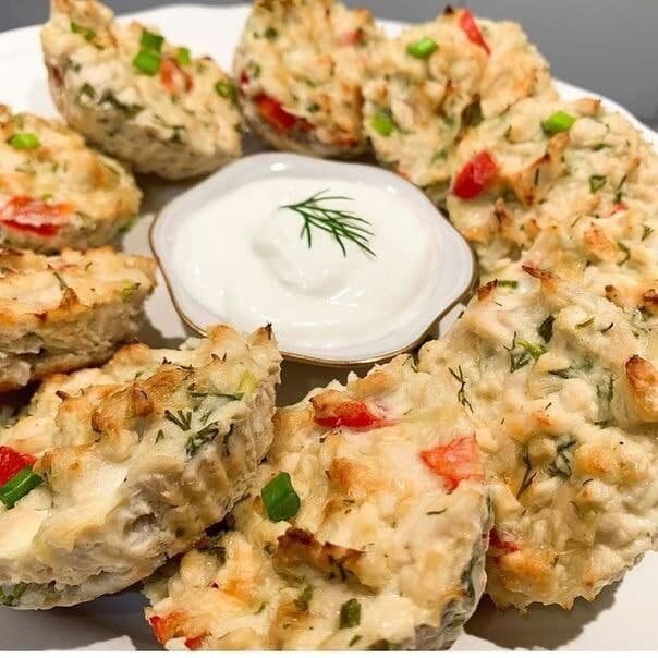 Ингредиенты: - куриное филе отварное 370 гр - сыр твердый 100 гр - болгарский перец 40 гр - лук зеленый и укроп по вкусу - 2 яйца - сметана 15% 150 гр (можно снизить калорийность за счет йогурта или мягкого творога) - соль, перец по вкусу Приготовление: 1. грудку измельчить ножом или в блендере 2. перец, зелень и лук нарезать 3. яйца немного взбить вилкой 4. все ингредиенты смешать, добавить сметану и тертый сыр, еще раз хорошо перемешать, посолить по вкусу (сыр уже соленый!) 5. смесь разложить по формочкам и запечь при 180 С минут 30-35 Приятного аппетита!
