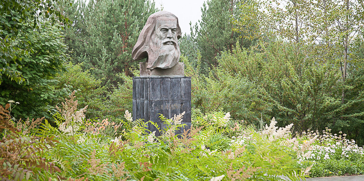 В считаных метрах от фундамента церкви стоит главный объект мемориала – большой каменный бюст Менделеева. Дети смотрели на огромную голову с явным уважением: вот какой ум был необъятный – на весь мир голова… Быть может, автор памятника Николай Распопов в том же духе размышлял. Он, кстати, из местных, окончил школу в расположенном неподалеку селе Абалак.