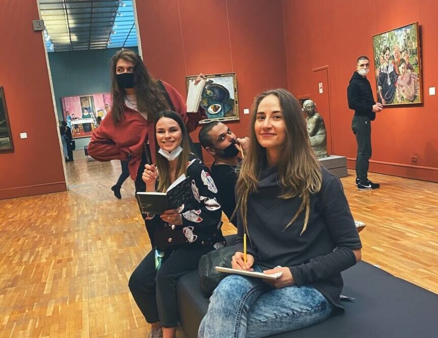 Важной частью программы режиссерской мастерской являются практические занятия в музеях. Каждый год у студентов проходят занятия в ГМИИ им. Пушкина, в Третьяковской галерее, в Государственном музее Востока, в Мультимедиа арт музее. Сегодня Андрей Мусин и Алёна Кукушкина, кураторы факультета «Режиссура музыкального, рекламного и фэшн видео» в Академии Коммуникаций Wordshop расскажут, как проходят практические занятия в Новой Третьяковке. Важно помнить, что картина — это очень качественный кинокадр. В музейной экспозиции в каждой картине гармонично взаимодействуют между собой все элементы пространственной композиции: фигуры, предметы, ракурсы, композиция цветовых масс, свето-тональное решение. Все идеально выверено. Поэтому изучение живописи — важный элемент работы режиссера. Мы изучаем: линейную композицию, тональную композицию, композицию объемных форм и пространственное решение. И в конце курса сводим эти знания вместе. Это нужно для того, чтобы понять, как работает архитектоника кадра