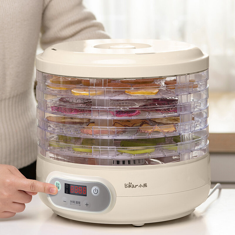Сегодня познакомим вас с полезным кухонным инструментом — сушилкой для овощей, фруктов и мяса Bear Appliance GGJ-A02D8. Она поможет разнообразить рацион питания и поможет самостоятельно готовить такие закуски, как сухофрукты или вяленое мясо. Купить Bear Appliance GGJ-A02D8 вы можете в интернет-магазине Molnia Electronics с приятной скидкой и быстрой доставкой. Дизайн и конструкция Устройство заключено в пластиковый корпус бежевого цвета с прозрачными емкостями для продуктов. Такой нейтральный дизайн позволяет органично вписать Bear Appliance GGJ-A02D8 в любой интерьер, современный или классический. А благодаря небольшим размерам корпуса (266 х 200 мм) сушилка легко поместится даже на небольшой кухонной столешнице. Корпус сушилки состоит из основной части и пяти пластиковых прозрачных контейнеров. Он имеет удобную разборную конструкцию: контейнеры легко снимаются друг с друга, и во время использования машины не обязательно устанавливать их все. Каждый ярус имеет прорези, способствующие