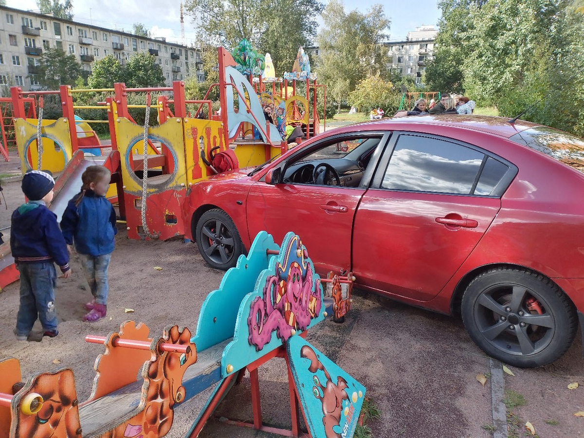 Женщина почувствовала себя "королевой двора" и припарковала своё авто на детской площадке. Разбирались всем двором