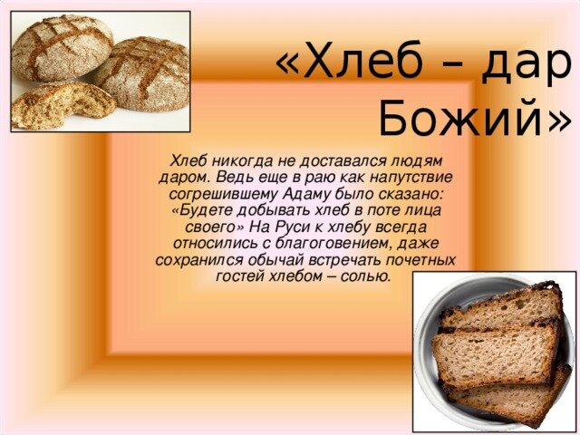 • Хлеб нельзя переворачивать «лицом» вниз, а также оставлять нож, воткнутым в буханку — это неуважение к нему.