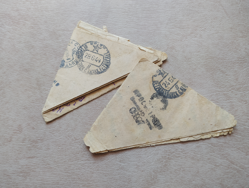 Что такое солдатское письмо-треугольник знают все. Об этом рассказывают в школе, об этом показывают по телевизору, особенно в канун годовщины Победы. Те, кто смог сохранить письма с фронта своих отцов, дедов, прадедов, наверняка тщательного берегут их, передавая следующему поколению, чтобы те через эти простенькие письма смогли прочувствовать то, что довелось пережить тем, кто воевал. Но знаете что, если заглянуть на аукцион "мешок", то писем-треугольников там выставлено несколько десятков (если не сотен) штук. Честно говоря, мне данное явление кажется чем-то диким. Диким не в том плане, что эти письма продаются, а диким - когда потомки тех, кто воевал, так запросто распродают эти ценнейшие артефакты перекупщикам, которые потом и выставляют эти письма на аукционы. Лист бумаги, свернутый в треугольник. На этом листе написан простенький текст, указан адрес. Вроде и всё. Но это для чужого человека. А если представить, как твой прадед, сидя где-нибудь в землянке, пишет это письмо, то стано