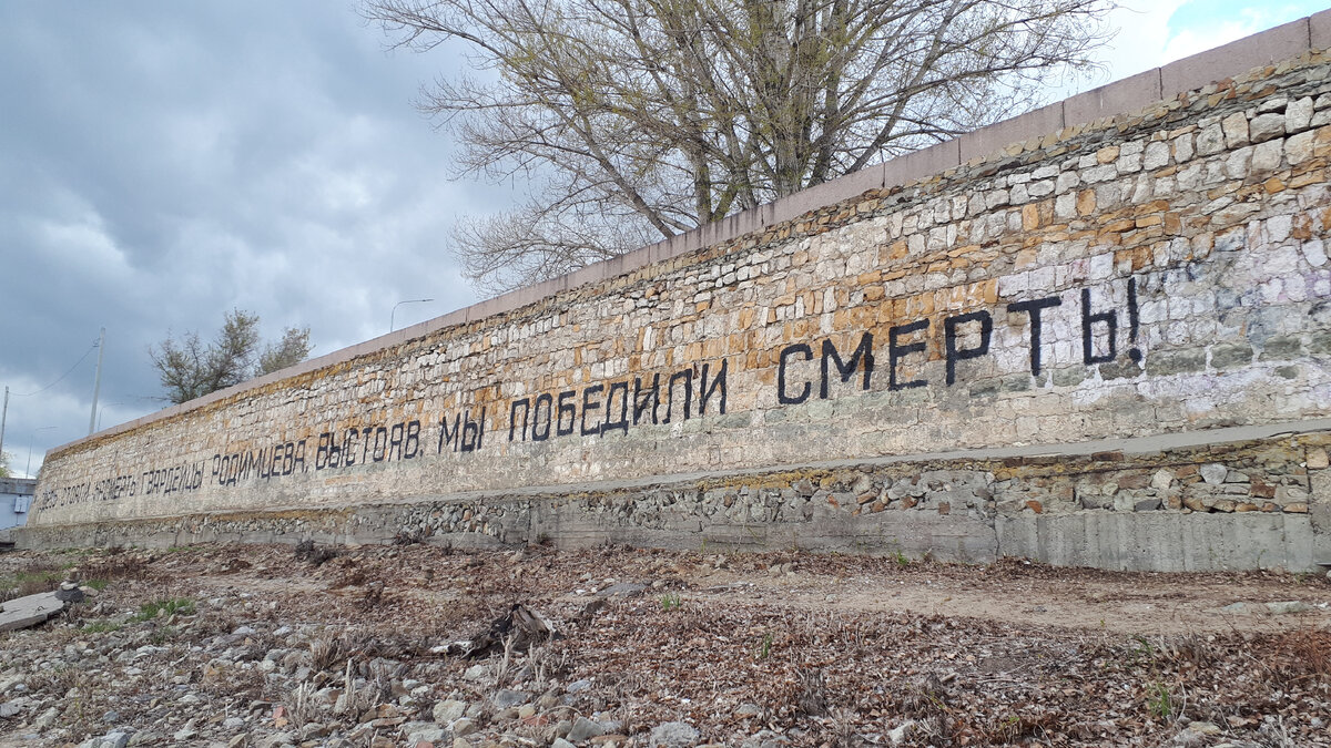 «Здесь стояли насмерть гвардейцы Родимцева, выстояв, мы победили смерть!» Такая надпись есть на одной из старых стен, бывшей когда-то здесь, пристани. Ничем не примечательная стена, на самом берегу Волги, всего в каких-то пяти-шести метрах от самой реки. С набережной эту стену не видно, видно только Волгу. Да и если идете по набережной, то вы сначала упираетесь в музей-панораму «Сталинградская битва», затем в мельницу, о которой я писал вот здесь, по ссылке. Затем вы пойдете к дому Павлова, о котором я тоже писал, уже по этой ссылке. Чисто случайно эту стену вы не увидите, к ней надо идти целенаправленно, зная, где она. Хотя, она не менее героическая достопримечательность, нежели та же мельница или дом Павлова.