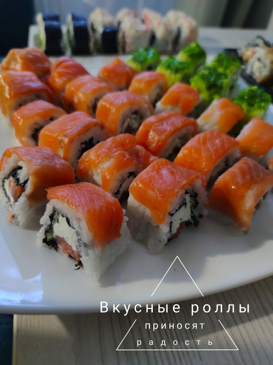 ✅ Совет. Чтобы при нарезании сливочный сыр не прилипал к ножу, суши-повара пользуются остро отточенными ножами. Сделав один разрез, они сразу очищают лезвие от сыра, и смачивают его рисовым уксусом или водой.