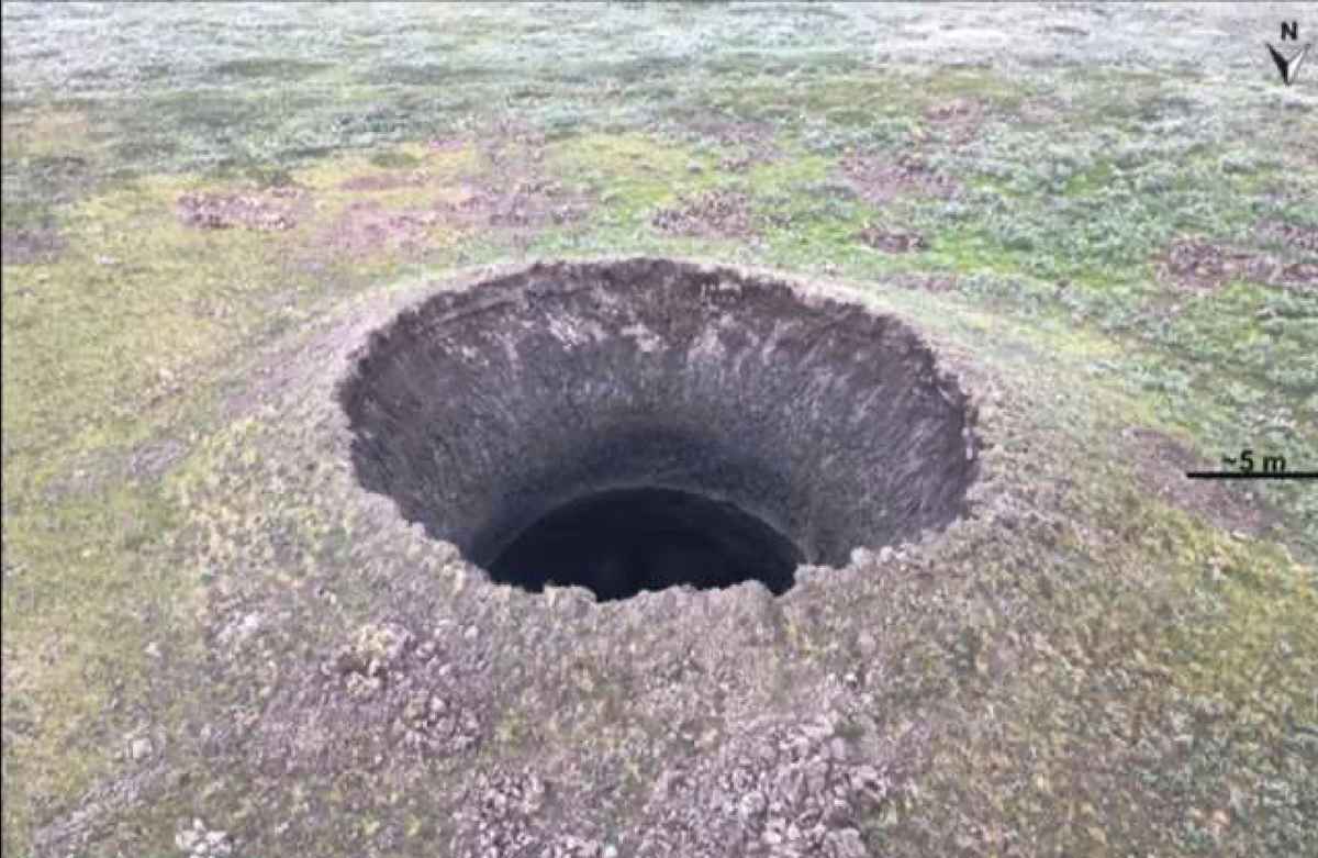 Отверстие Ямальского кратера 50 метров в глубину, радиусом 20 метров. Тайна его происхождения будоражила умы научных работников. Ученые задавались вопросом, что создает в Арктике воронки? Предположений было много: упавший метеорит, инопланетяне, таяние вечной мерзлоты, испытание оружия. Загадка раскрыта Специалисты, занимающиеся этим вопросом, однозначно ответили: причина образования воронок — метан, газ вырывающийся из недр земли. В результате плавления мерзлоты газом, происходит разрушение породы. Давление внутри нарастает, но поверхность почвы сдерживает какое-то время разрушенные мерзлые породы и лед, давление газа достигает огромных значений и всё что было внутри вылетает наружу. Это напоминает вулкан, только вместо лавы кратер извергает газ. Поверхность будущего кратера набухает долгое время, от 4 лет и более. За ним следят ученые. В глубину кратера запускают летательный аппарат, который фотографирует строение и вычисляет глубину. Кратер превращается в озеро Если кратер обнаружил