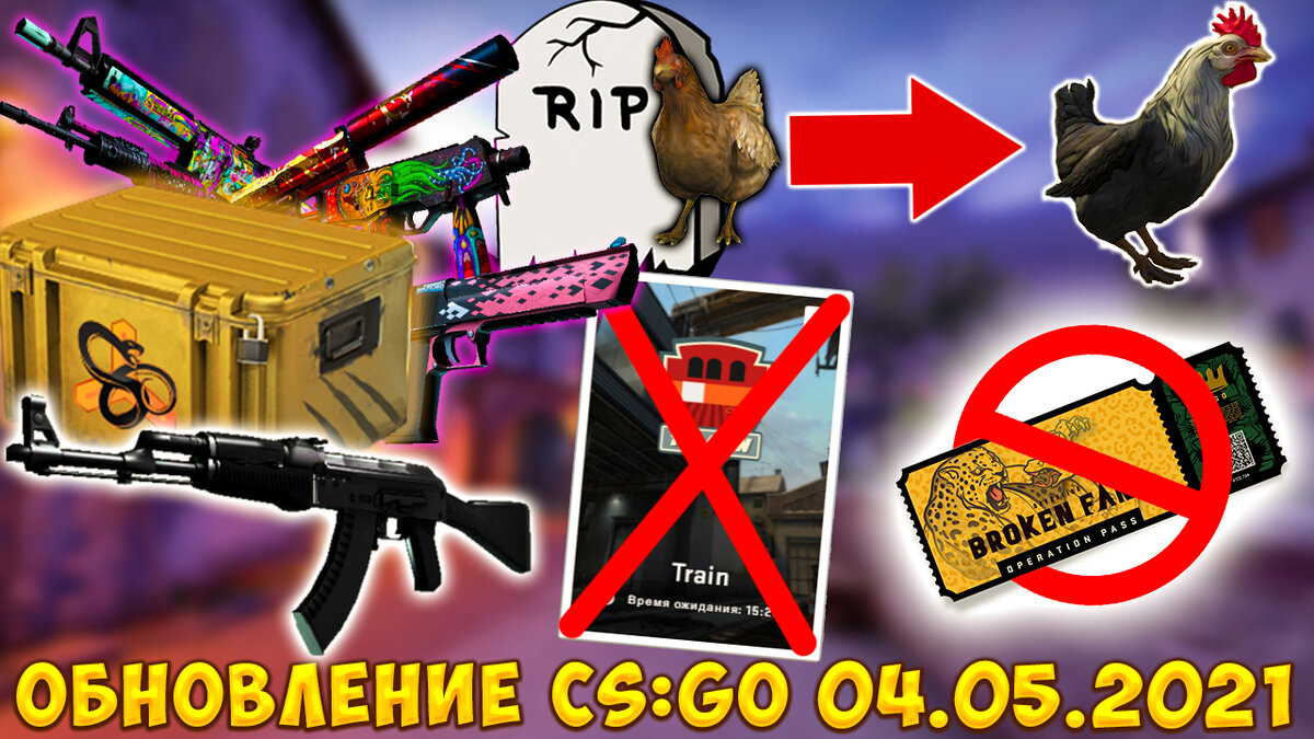 Сегодня 04.05.2021 вышло новое обновления в cs:go: 1. Изменили модельку куриц. 2. Train выкинули из мм-маппула, заменив его Ancient 3. Добавили новый кейс "Snakebite Case" 4. Убрали операцию "Broken Fang" 5. Статистику матчей оставили, но теперь она платная. Хочешь понять, насколько позорно ты играешь? Плати 1$! 6. Добавлены новые карты, а название одной из них полностью описывает обновление – Mocha. 7. Изменили несколько карт, в том числе и Nuke.