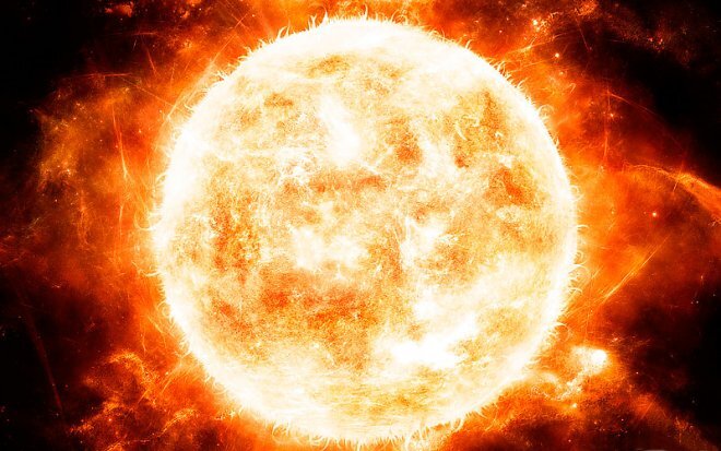 Про смерть Вселенной мы уже поговорили. Теперь я хочу поговорить об центральном объекте нашей системы - о Солнце. Солнце - это огромный шар разогретого газа. Его диаметр оценивают в 1,392 млн км. Это в целых 109 раз больше чем у Земли. 99,87 процентов массы нашей звездной системы составляет масса Солнца. Температура поверхности Солнца составляет примерно 5500 градусов Цельсия, в то время как ядро, по оценкам учёных, имеет температуру в 15 млн градусов Цельсия. Как образовалось Солнце? Пять миллиардов лет назад не было ни Солнца, ни планет окружающих его. Было только огромное облако газа и пыли. Оно, по мнению учёных, преимущественно состояло из водорода и вращалось вокруг своей оси. Под действием гравитации это облако сжималось, частицы соединялись вместе. На протяжении тысяч лет, пока протозвезда и окружающее ее облако продолжали сжиматься, атомы составляющие облако, сталкивались выделяя тепло. Температура ее росла, особенно в более плотном центре., тк там частота столкновений б