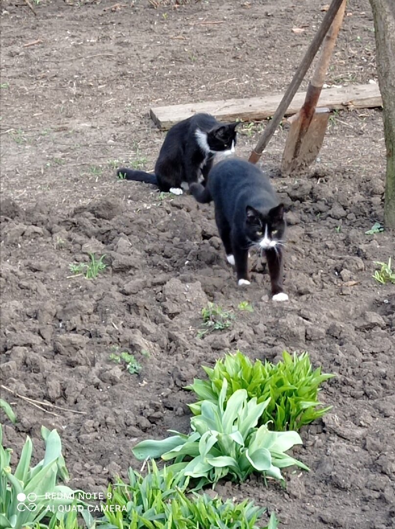 А вот еще немного приветиков от сельского мини-приюта Ирины С. Продолжаются майские праздники, жизнь в приюте кипит. Постоянно волонтер и ее хвостатые помощники наводят порядки и красоту во дворе! Светлый праздник: волонтер с хвостиками испекли куличи и уже попробовали их!) Смотришь на эту красоту и даже не укладывается в голове, что там война совсем близко... А так фото чудесные какие, вы только посмотрите! Умеет волонтер показать своих во всей красе. Только вот какой ценой она это делает, это только она и знает... Волонтер и сама признается, что очень тяжело, но хочется, чтобы было хорошо и красиво, а главное здоровы все, сыты и без войны! Мира всем и добра ❤ Толстый и черный по грядкам ходит это Томас!) Они со Златиком уже еле ходят, нужно на диету сажать 💓