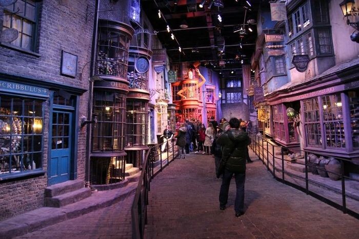 Настоящий Косой Переулок. На создание этой улицы художников вдохновили книги Чарльза Диккенса. Warner Brothers потратили 10 лет на студии Leavesden, снимая восемь фильмов о Гарри Поттере. Для съёмок были использованы пять павильонов. При студии были созданы департамент по животным, департамент по фантастическим существам, департамент визуальных и спецэффектов и так далее. Недавно журналисты посетили все эти студии, сфотографировали всё, что смогли найти интересного и разузнали все секреты. Вот они: