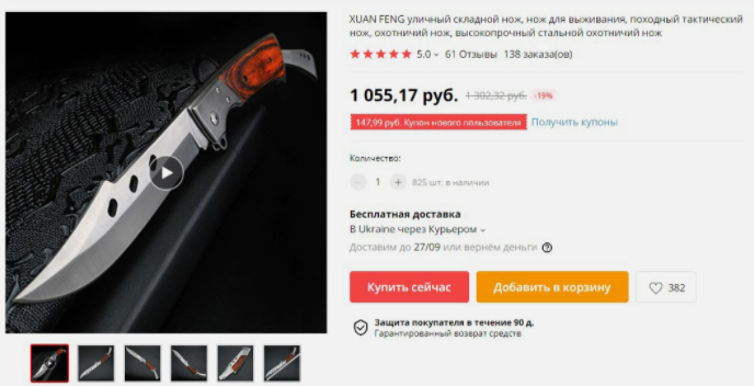 Пример из Оренбурга: женщина заказала на Aliexpress два ножа. В описании на сайте было сказано, что ножи не относятся к холодному оружию.
