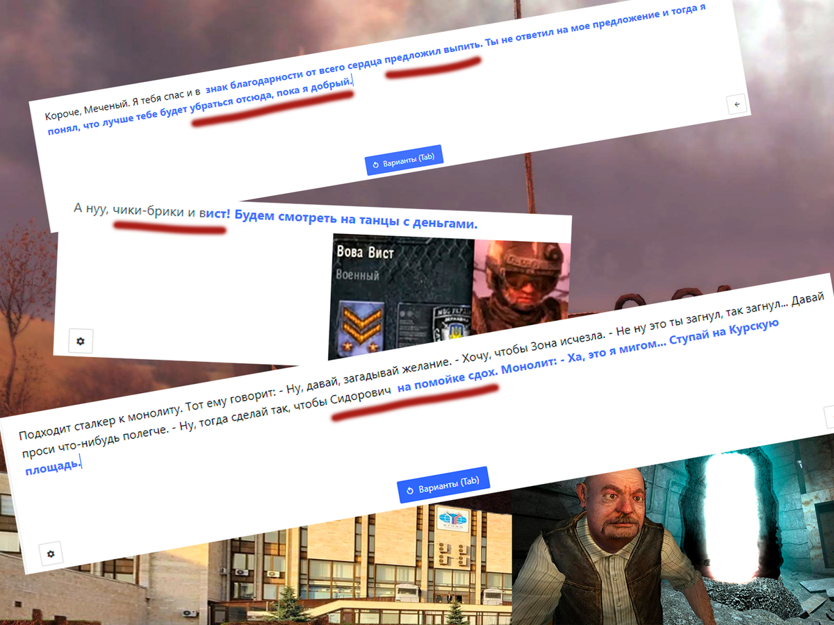 К счастью, в нашем распоряжении есть интернет, где можно найти всё. В том числе и искусственный интеллект, который может по-своему продолжить и без того смешные фразы и анекдоты из сталкера.