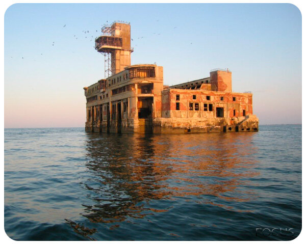 Расскажу о морской цитадели на просторах Дагестана, овеянной тайнами и легендами, но рискующей бесследно исчезнуть. Примерно в 3 км от побережья Каспийска, посреди моря располагается удивительное сооружение, напоминающее французский форт Бойяр. Мрачное полуразрушенное здание, окружённое каспийскими водами и шумными стаями чаек, смотрится поистине сюрреалистично.
