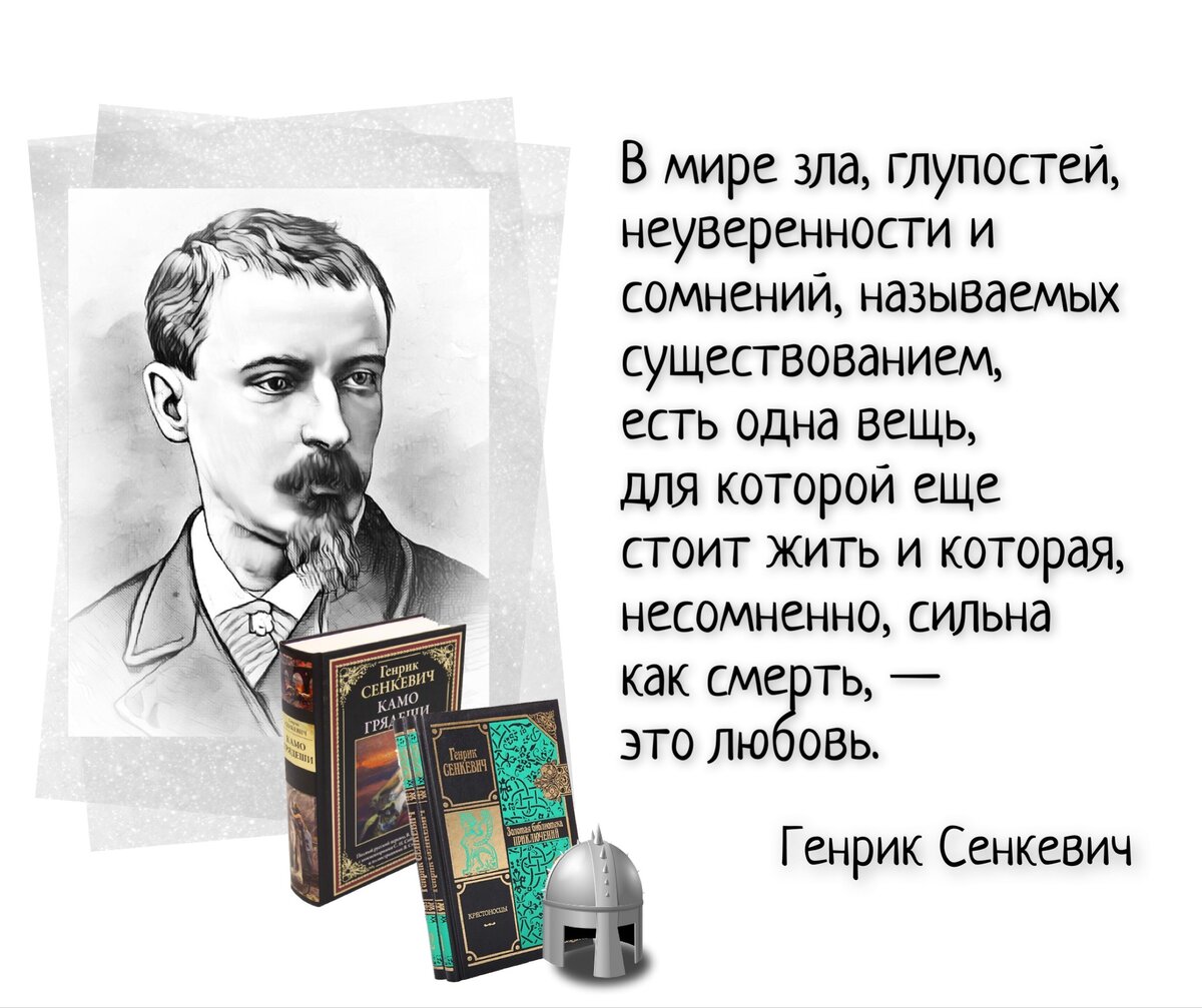 «Жизнь — огромная сокровищница, и из этой сокровищницы я умел выбирать самые чудесные драгоценности». (Генрик Сенкевич) Классик польской литературы Генрик Сенкевич, член-корреспондент и почётный академик Императорской Санкт-Петербургской академии наук по отделению русского языка и словесности - один из национальных героев Польши и подданный Российской Империи. Когда в 1905 году писателю была присуждена Нобелевская премия по литературе, вся Россия гордилась великими достижениями своего гражданина: его творчество всегда любили, да и по формальным признакам Сенкевич оказался первым российским лауреатом по литературе известнейшей мировой премии. Но именно что по формальным… Читатели всего мира ценят исторические романы Сенкевича: «Огнем и мечом», «Потоп», «Пан Володыевский». Сегодня эти произведения чаще всего воспринимаются как приключенческие, но в сложный период развития истории Польского государства его герои выполняли совсем другую роль - «поддержание духа», как сообщил писатель