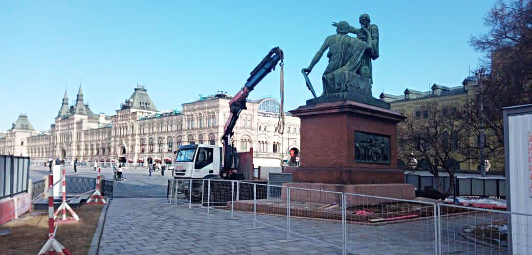 Монтаж тротуарной плитки памятника «Минину и Пожарскому»