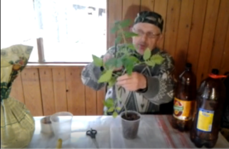 Многие садоводы и огородники, при неправильном выращивании рассады помидор, сталкиваются с проблемой вытянувшейся рассады. На подоконнике места мало, кроме помидор, надо выращивать рассаду еще многих растений, которые хочется вырастить пораньше. Кроме этого нужно как то привезти её на дачу, при этом не поломав её. В общем куча проблем. Которые необходимо каким то образом решить. Мой многолетний опыт выращивания рассады помидор, тоже иногда не помогает. Несмотря на все ухищрения рассада все равно иногда вытягивается. Вроде и света достаточно и поливаю редко и не перекармливаю, а все равно перерастает. Перебрав все советы которые есть в Рунете, в умных книгах, я остановился на нескольких способах. Причем, Способ №4 я нигде не встречал. Так, что можно сказать эксклюзив. Способ №1. Тут по моему всё ясно. Берем помидор скручиваем стебель и таким образом садим. Высаживать нужно именно в таком виде и на глубину как в емкости. Чем хорош этот способ, не надо ждать когда разовьются дополнительн